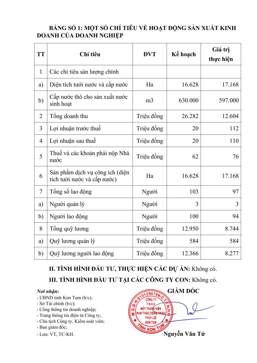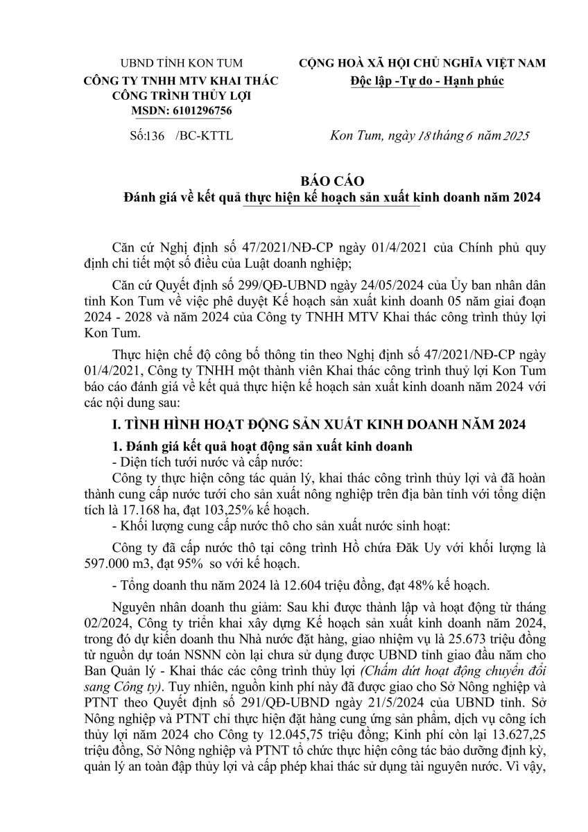 CÔNG TY TNHH MỘT THÀNH VIÊN KHAI THÁC CÔNG TRÌNH THỦY LỢI KON TUM