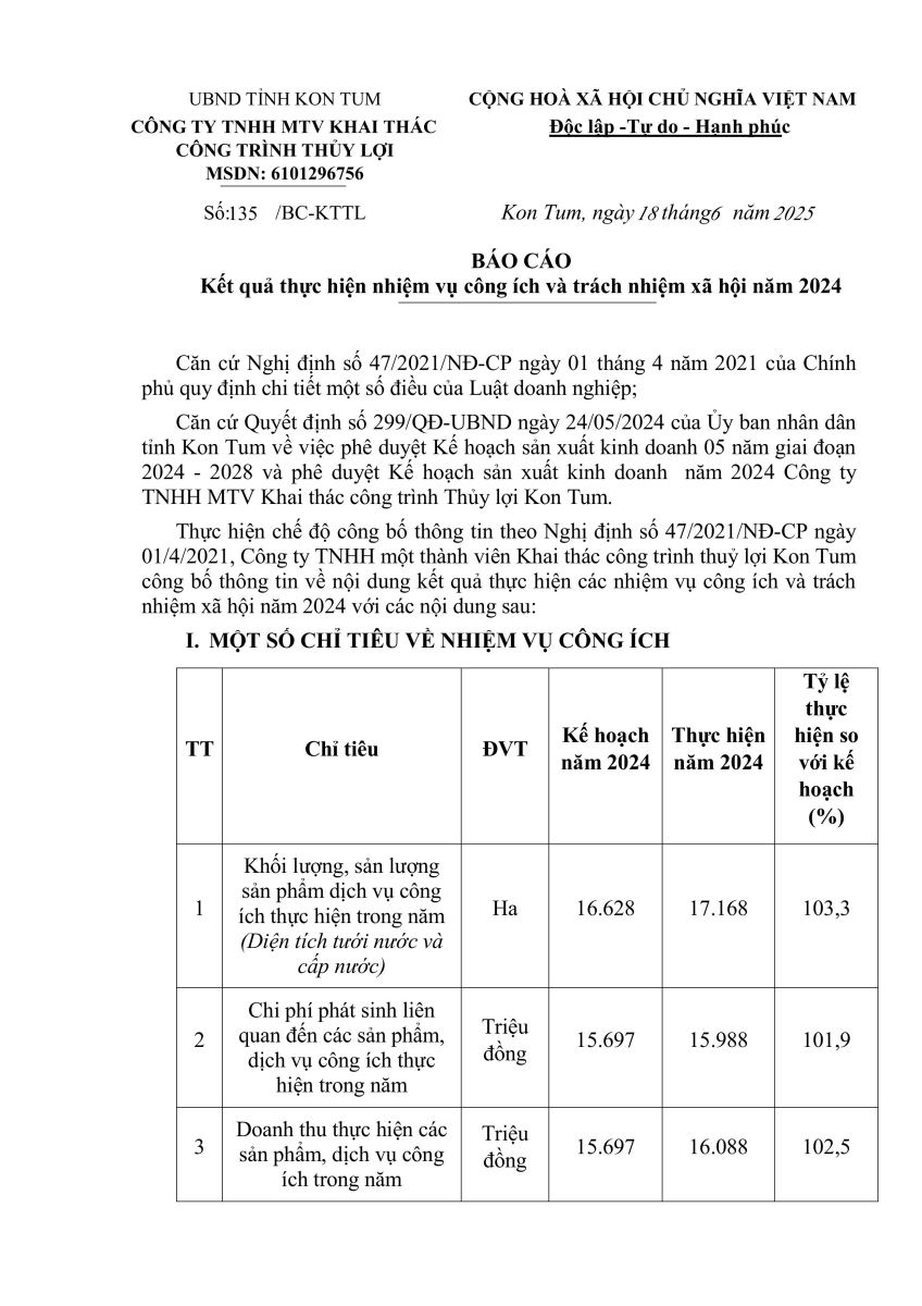 CÔNG TY TNHH MỘT THÀNH VIÊN KHAI THÁC CÔNG TRÌNH THỦY LỢI KON TUM
