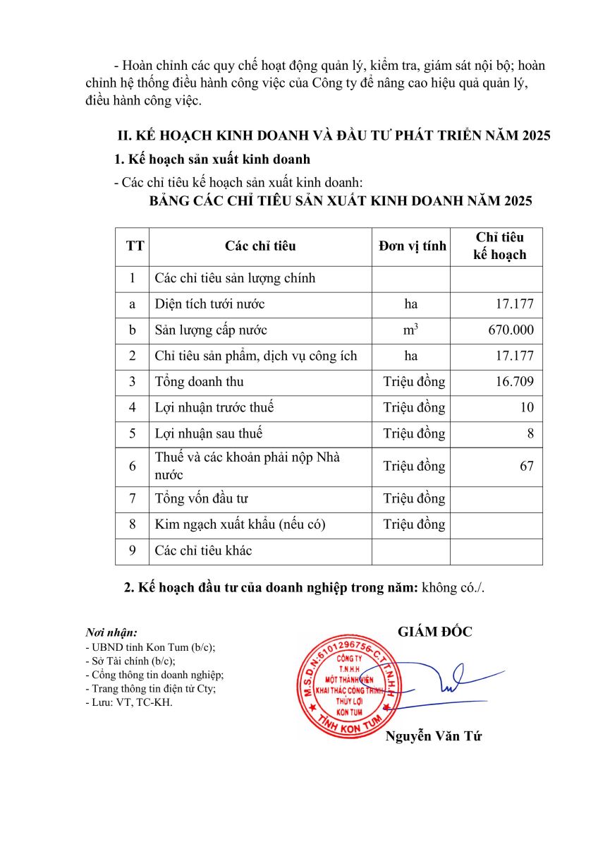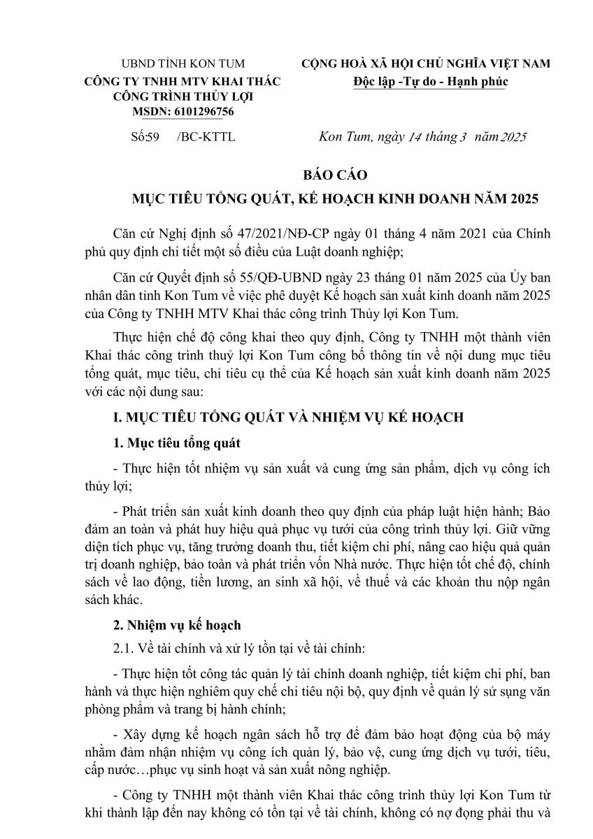 CÔNG TY TNHH MỘT THÀNH VIÊN KHAI THÁC CÔNG TRÌNH THỦY LỢI KON TUM