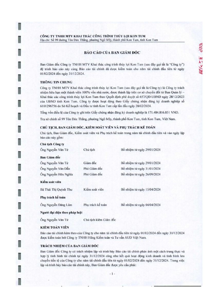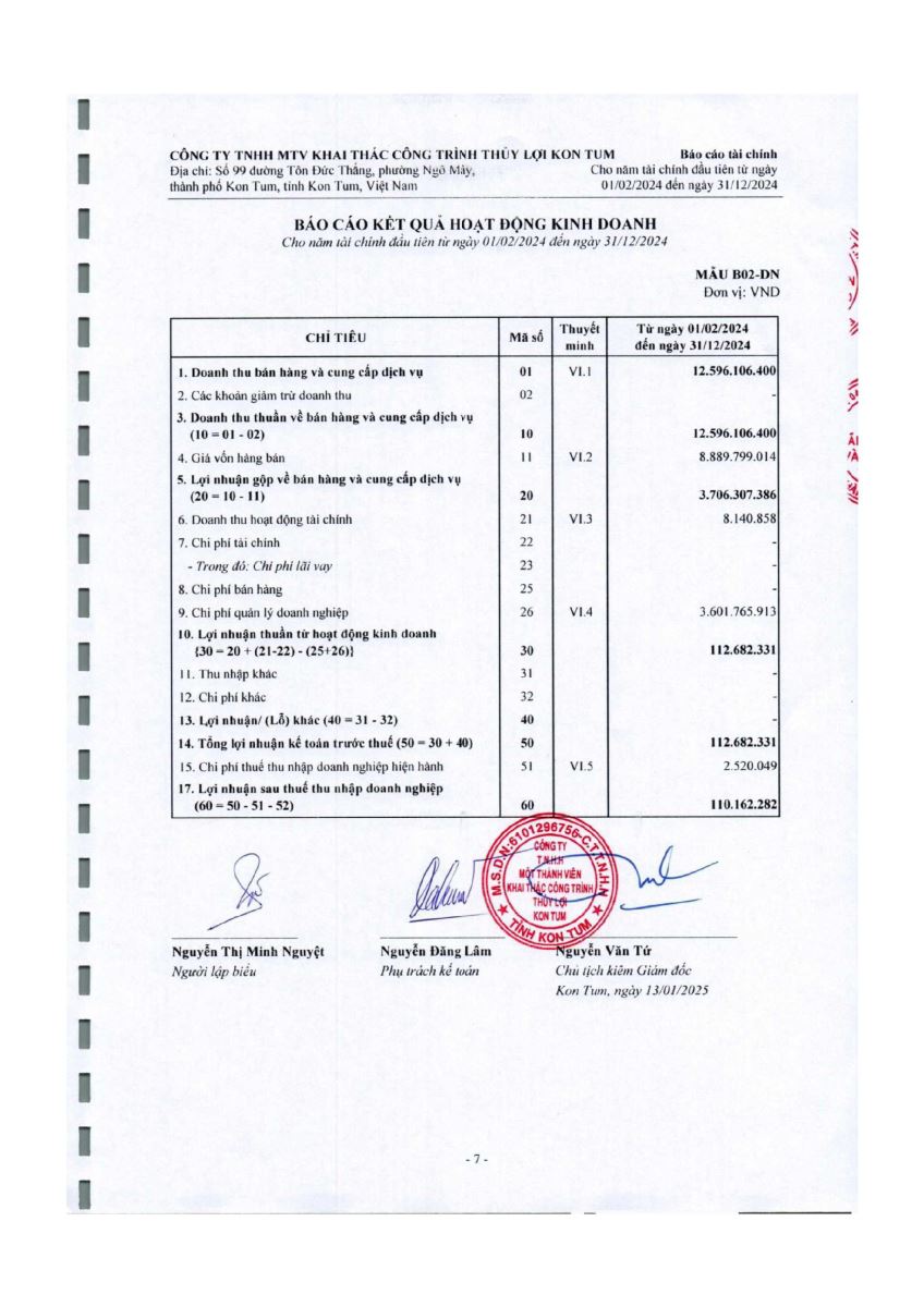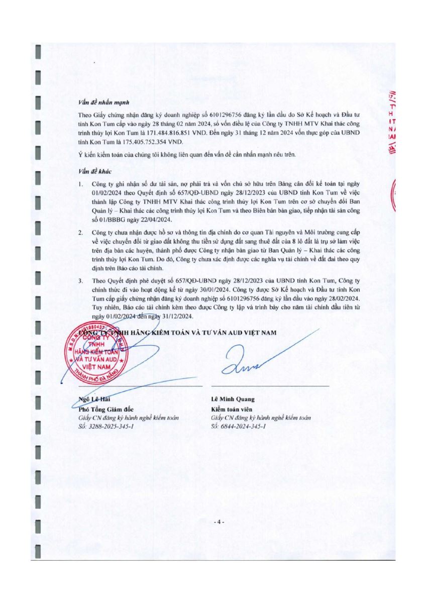 CÔNG TY TNHH MỘT THÀNH VIÊN KHAI THÁC CÔNG TRÌNH THỦY LỢI KON TUM