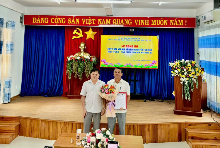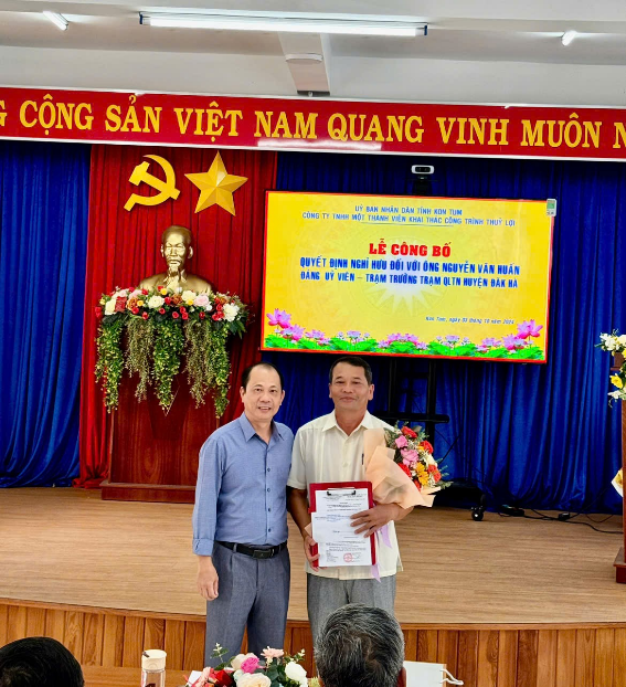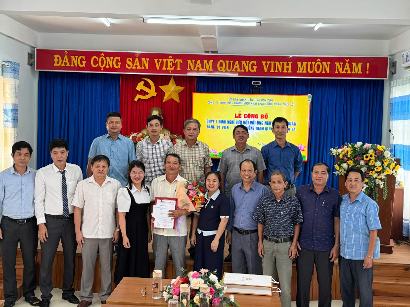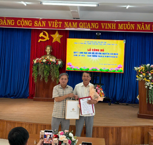 Đc: Nguyễn Văn Tứ Bí thư Đảng ủy - Chủ tịch kiêm Giám đốc Cty trao QĐ nghỉ chế độ hưởng BHXH